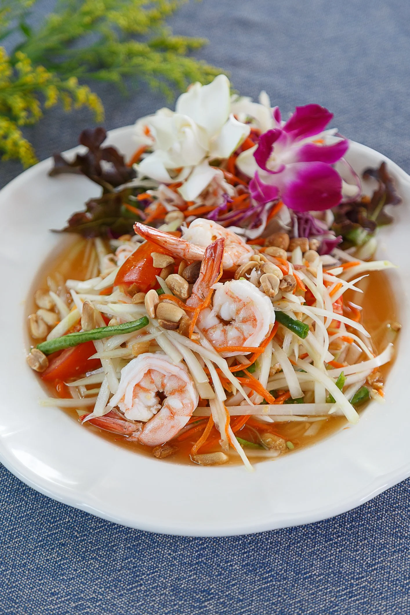 Thai Style Grilled Chicken served with Green Papaya Salad.